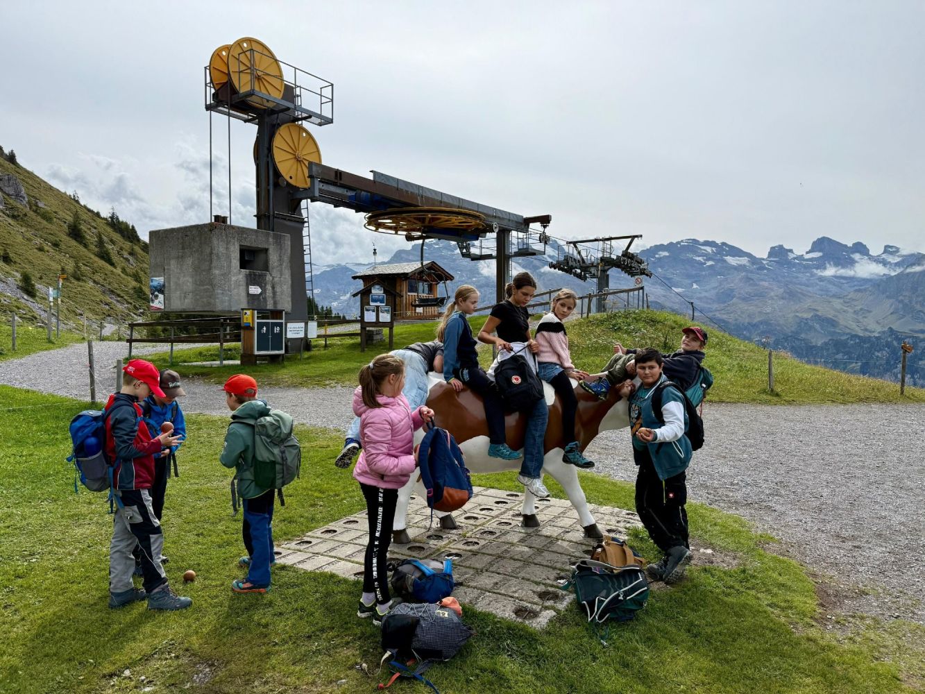 Mit gestärkten Kräften wanderten wir bis zum Globis Alpenspielplatz, der sich in der Nähe der Mittelstation befand. Auf dem Weg begegneten wir fünf weiteren Kugelbahnen, wodurch die Wanderung stets unterhaltsam blieb. Bei der Mittelstation angekommen, stand der zweitletzte Höhepunkt vom Tag an – das Rodeln. Nachdem jedes Kind mit Vollgas die Rodelbahn hinuntergesaust war, trafen wir zufällig den Globi. Bevor wir die Heimreise antraten, tobten sich die Kinder noch auf dem Spielplatz aus. Das gelungene Jugireisli endete am Abend beim Schulhaus Dorf, wo wir die erschöpften, aber dennoch glücklichen Kinder wieder ihren Eltern übergeben durften.
