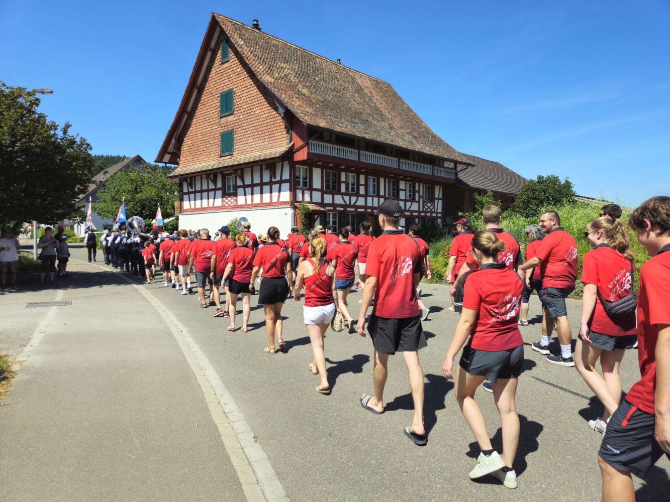 Am Sonntag nach der Rückreise wurden wir herzlich von der Gemeinde und den örtlichen Vereinen empfangen. Ein grosses Dankeschön für den schönen Empfang und den gemütlichen Apéro!