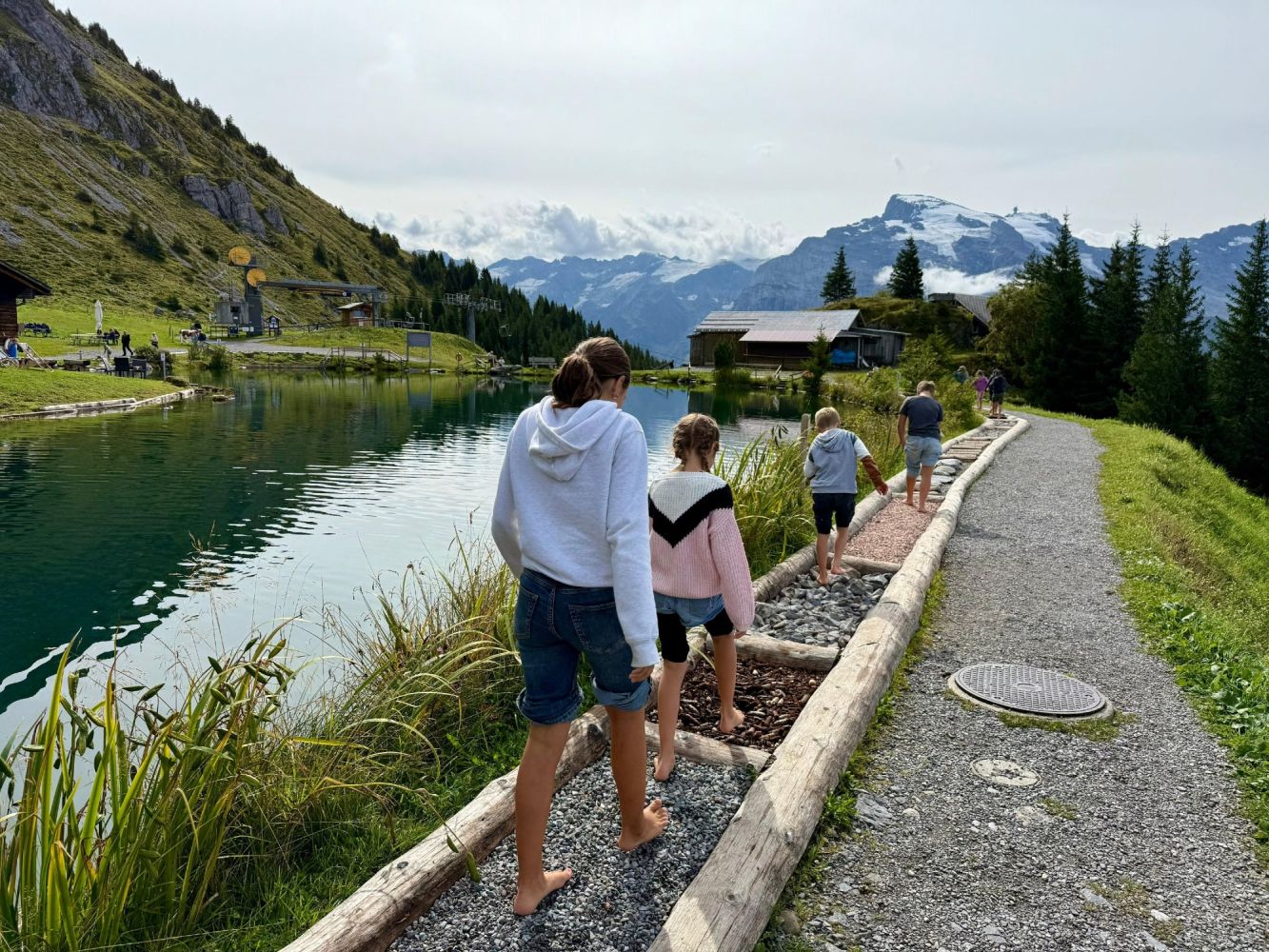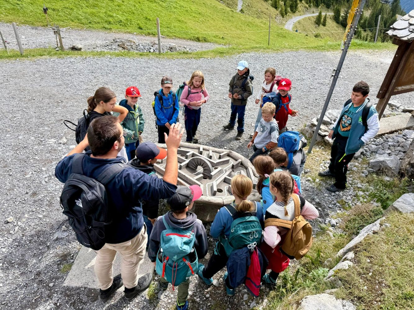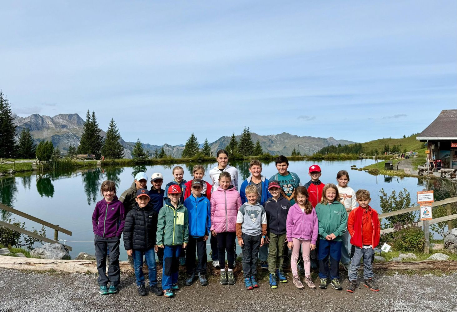Das diesjährige Jugendreisli der Jugend- und Mädchenriege des TV Wil führte uns nach Engelberg. Unsere Reise startete am frühen Morgen beim Schulhaus Dorf, bevor wir mit Bus und Zug in die Berge fuhren. In Engelberg angekommen, konnten wir eine Gondelfahrt bis zur Mittelstation geniessen. Danach ging es weiter mit dem Sessellift bis ganz nach oben zur Brunnihütte. Dort wartete bereits unser erstes Highlight mit dem Barfuss Erlebnispfad. Der Weg führte uns durch das eiskalte Wasser des Härzlisees. Gleich neben dem Bergsee befand sich die erste von sechs verschiedenen Holzkugelbahnen. Die Kinder spielten mit ihrer Holzkugel und probierten jede mögliche Variante aus, sodass ihre Kugel am schnellsten im Ziel landete. Als die ersten Sonnenstrahlen sich zeigten, verpflegten wir uns mit unseren selbstgemachten Sandwiches.
