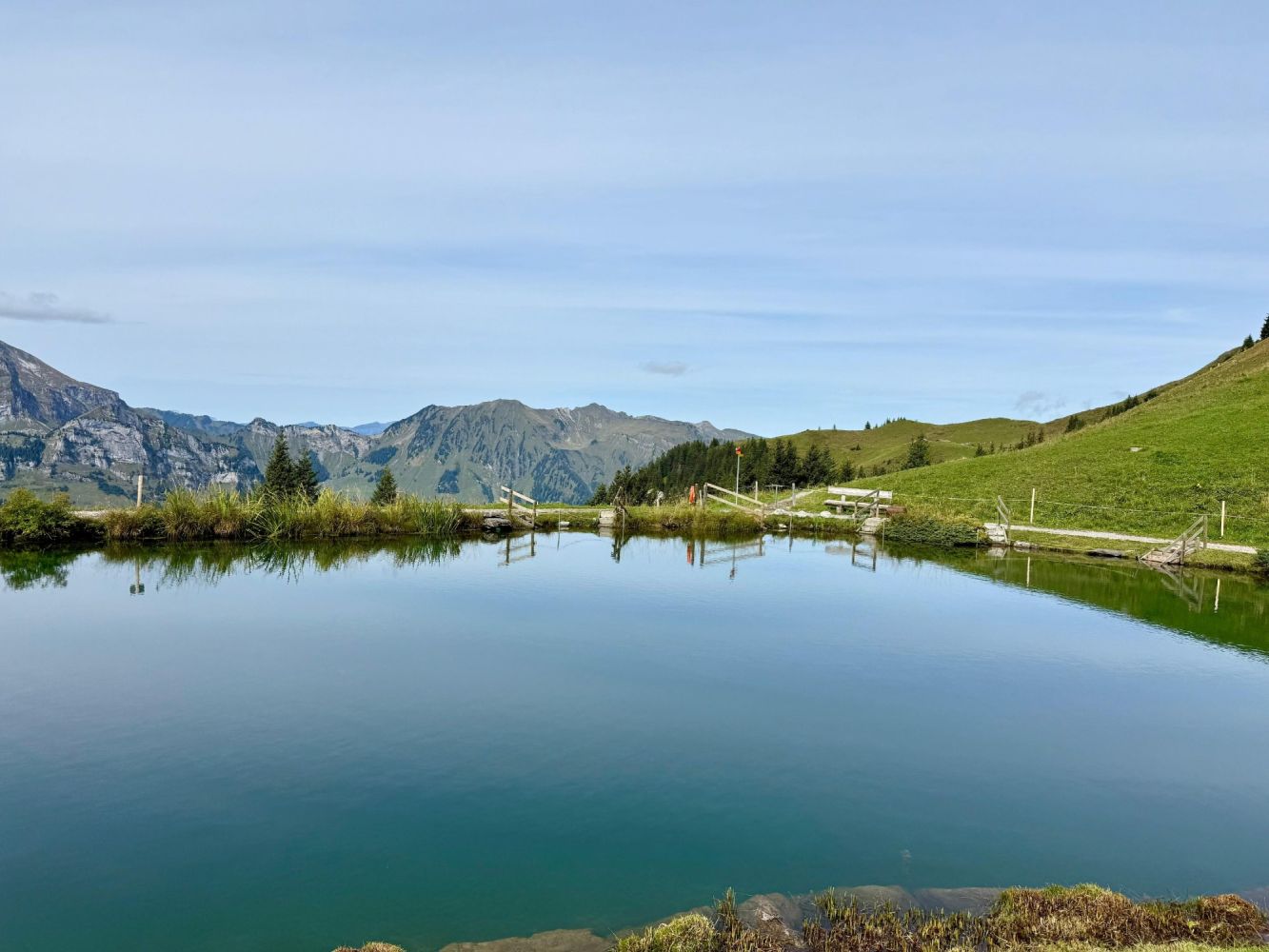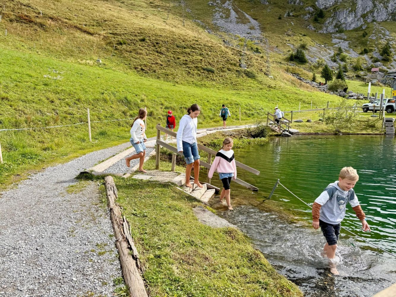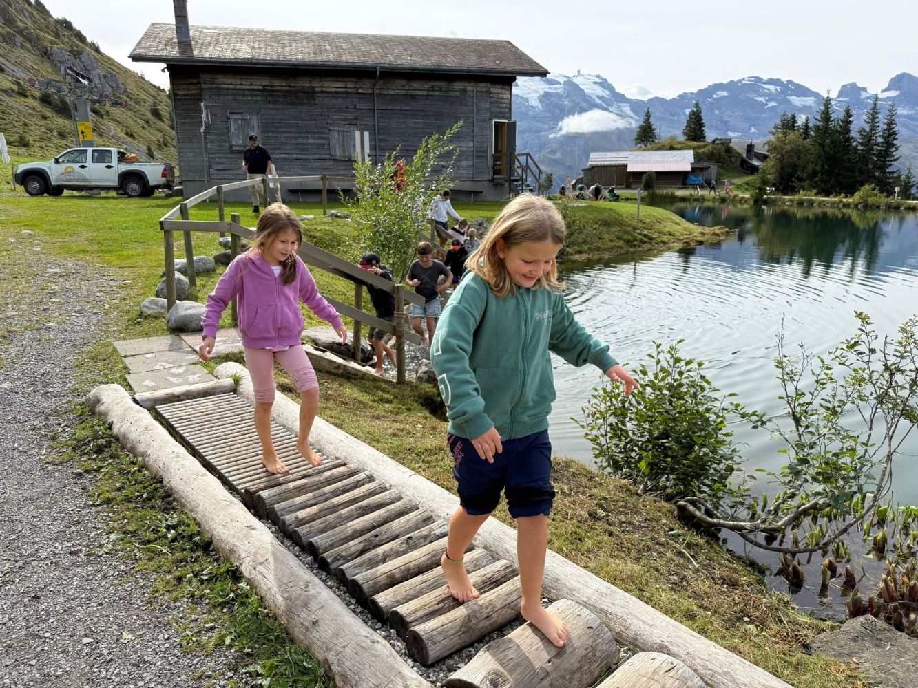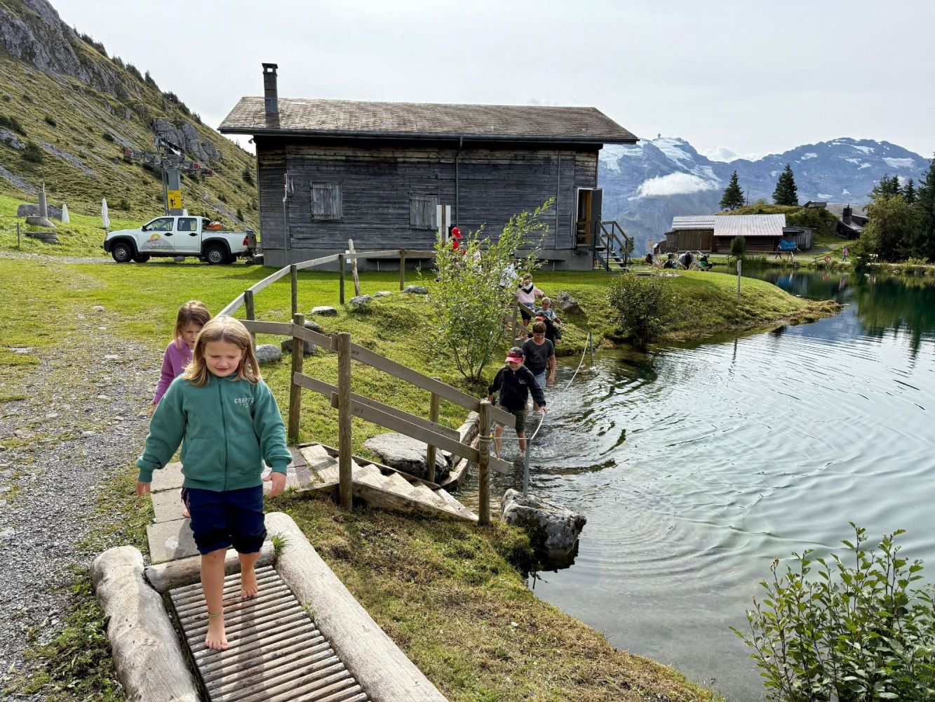 Das diesjährige Jugendreisli der Jugend- und Mädchenriege des TV Wil führte uns nach Engelberg. Unsere Reise startete am frühen Morgen beim Schulhaus Dorf, bevor wir mit Bus und Zug in die Berge fuhren. In Engelberg angekommen, konnten wir eine Gondelfahrt bis zur Mittelstation geniessen. Danach ging es weiter mit dem Sessellift bis ganz nach oben zur Brunnihütte. Dort wartete bereits unser erstes Highlight mit dem Barfuss Erlebnispfad. Der Weg führte uns durch das eiskalte Wasser des Härzlisees. Gleich neben dem Bergsee befand sich die erste von sechs verschiedenen Holzkugelbahnen. Die Kinder spielten mit ihrer Holzkugel und probierten jede mögliche Variante aus, sodass ihre Kugel am schnellsten im Ziel landete. Als die ersten Sonnenstrahlen sich zeigten, verpflegten wir uns mit unseren selbstgemachten Sandwiches.