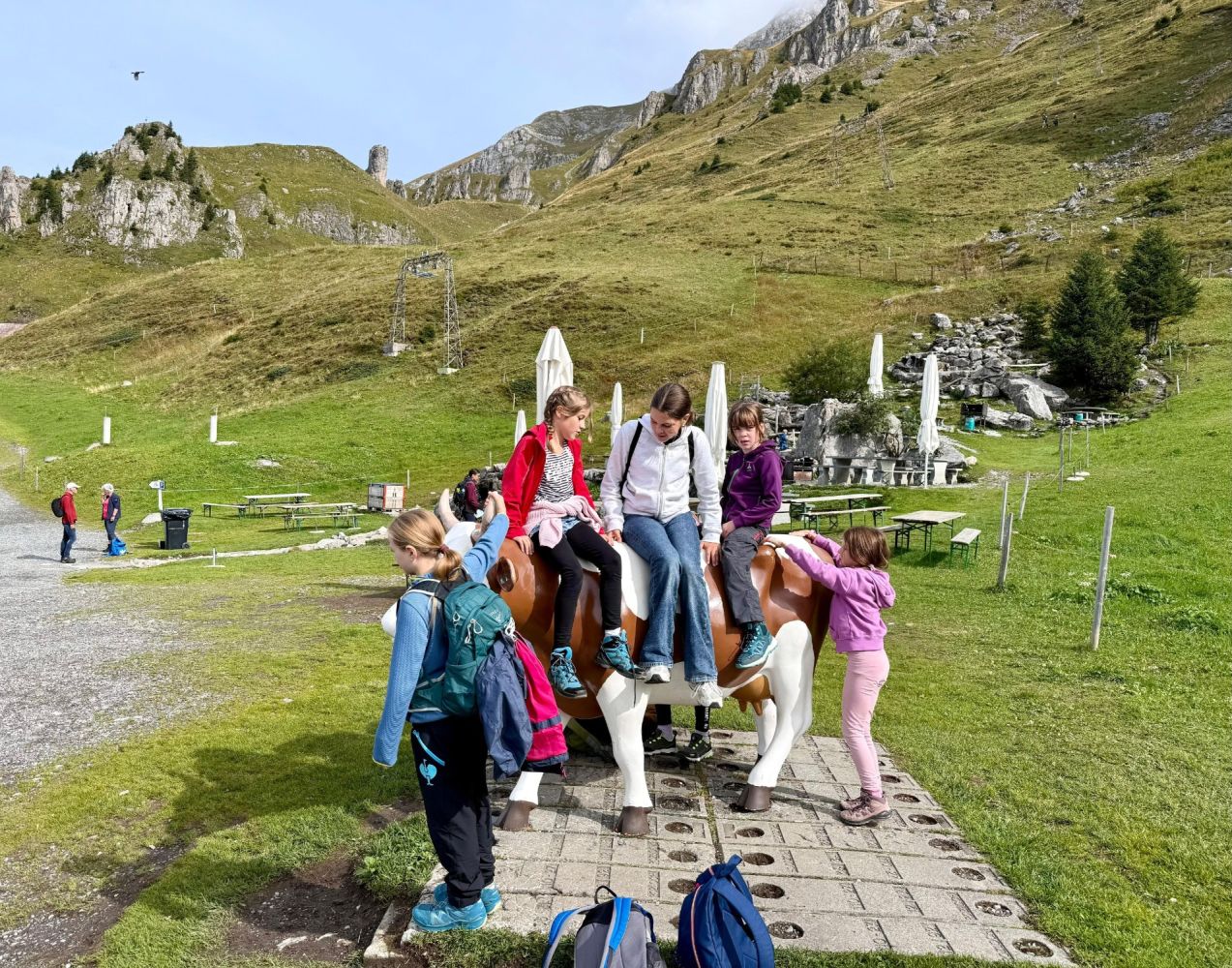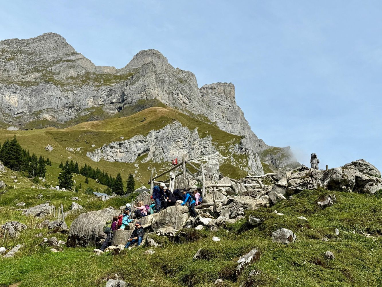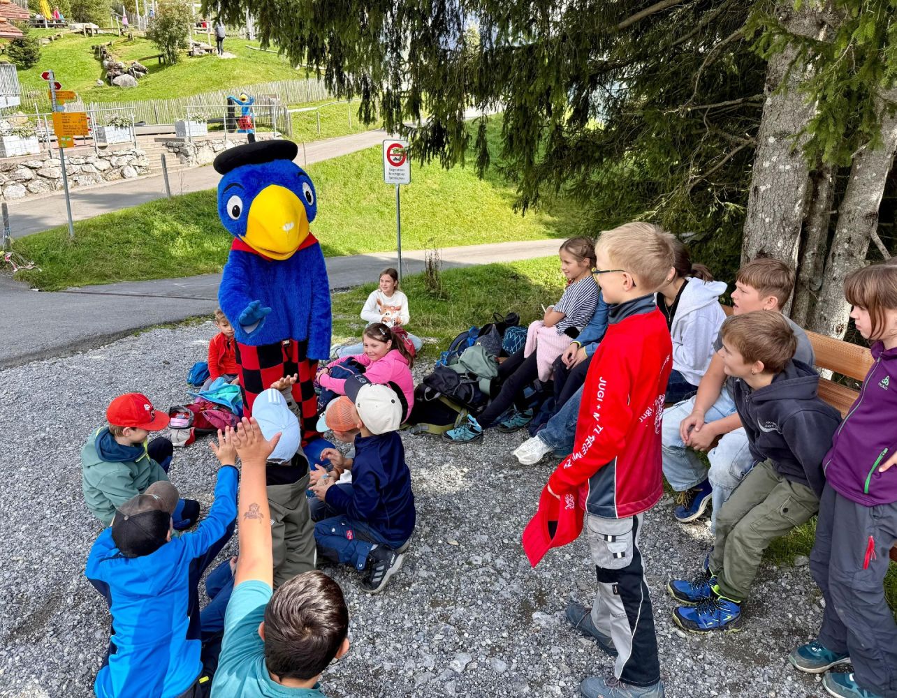 Mit gestärkten Kräften wanderten wir bis zum Globis Alpenspielplatz, der sich in der Nähe der Mittelstation befand. Auf dem Weg begegneten wir fünf weiteren Kugelbahnen, wodurch die Wanderung stets unterhaltsam blieb. Bei der Mittelstation angekommen, stand der zweitletzte Höhepunkt vom Tag an – das Rodeln. Nachdem jedes Kind mit Vollgas die Rodelbahn hinuntergesaust war, trafen wir zufällig den Globi. Bevor wir die Heimreise antraten, tobten sich die Kinder noch auf dem Spielplatz aus. Das gelungene Jugireisli endete am Abend beim Schulhaus Dorf, wo wir die erschöpften, aber dennoch glücklichen Kinder wieder ihren Eltern übergeben durften.